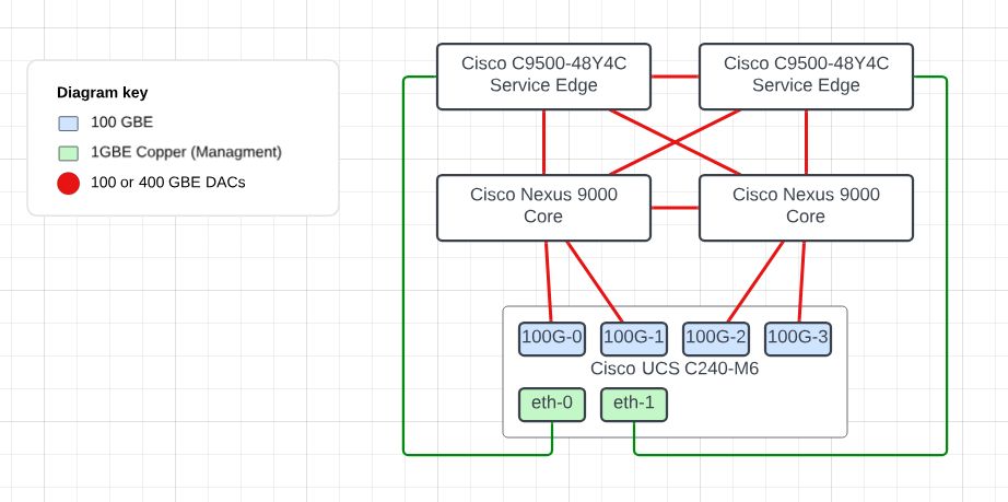 This device provides 48 ports of 1/10/25 GbE and 4 40/100 GbE ports for uplinks to the DC-CORs. The primary purpose of this device is to connect services within the datacenter. One example is th KGs that are used to connect to the other sites.